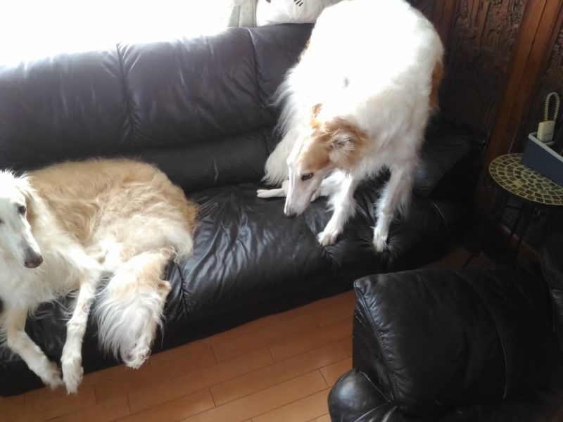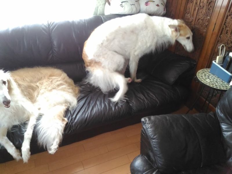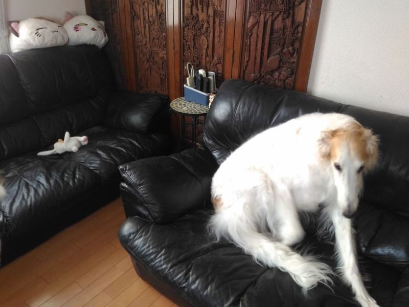 大きいソファーから小さいソファーに向かってピョンと飛び移って座った