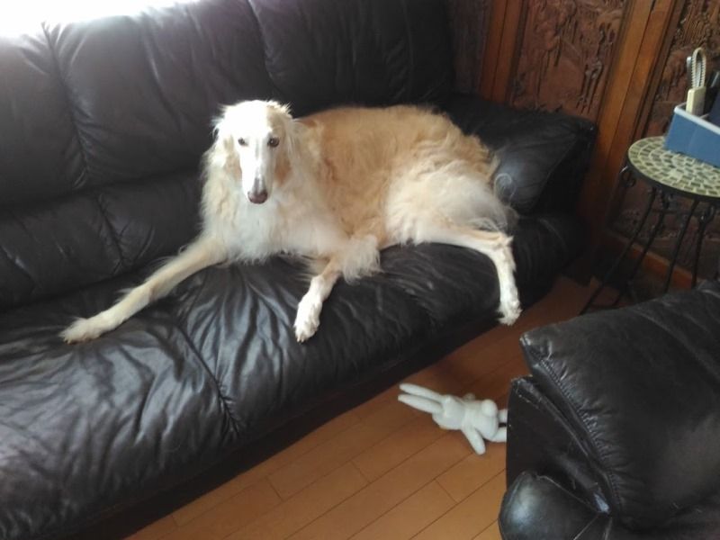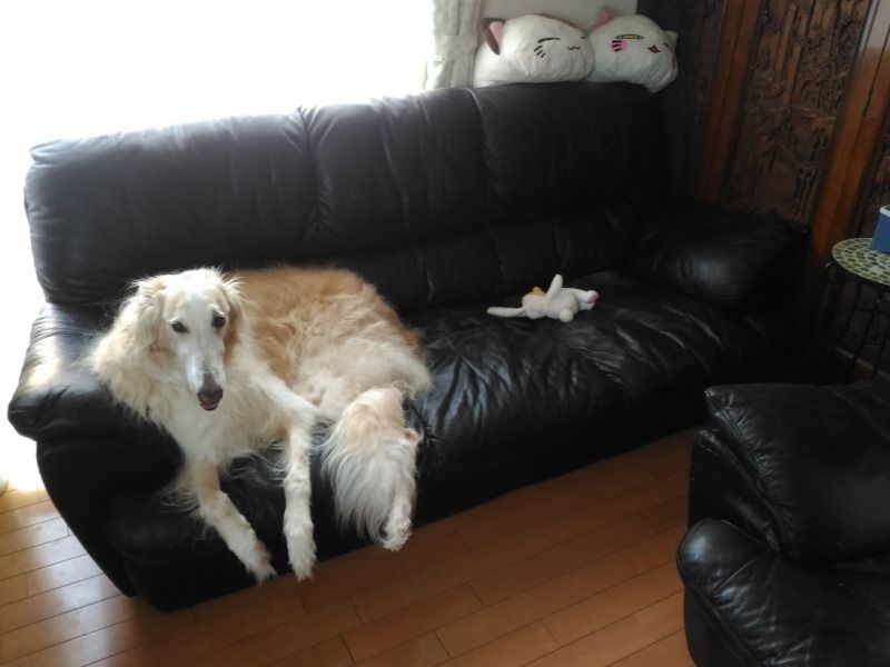 今日、陸ぼんがソファーでぬいぐるみと共に休んでいました