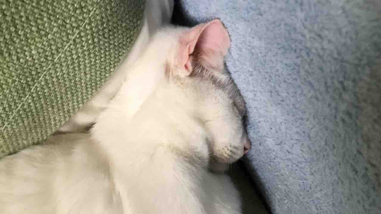 割と子猫とかでも膝に乗せると顔を手に包まれるようにして寝たりします。大人猫でも同様で、そういう包まれる感じが好きなんだろうなと。