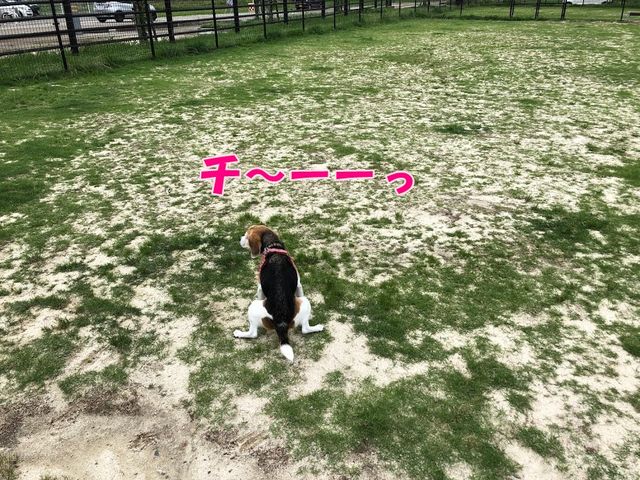平日なので誰もいないドッグランの真ん中でチッコ(笑)