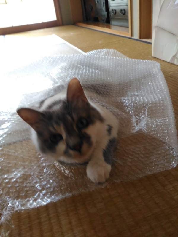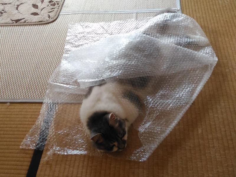和室では、ヘッドライトを梱包していたプチプチに包まる銀次が(笑)