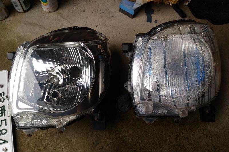 このままでは左のヘッドライトで金魚が飼えるようになるのか?それとも苔が生えて緑の目になって緑内障になるのかも(笑)
