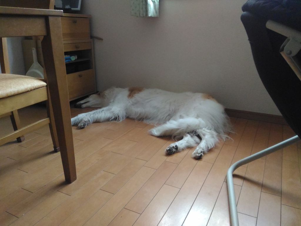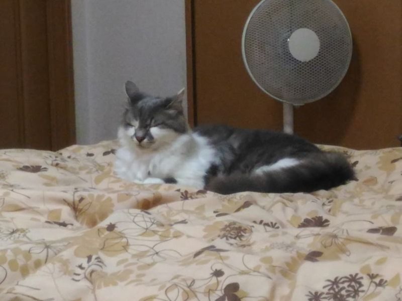 ユリさんはエアコンの風が直撃する場所を覚えたようだ