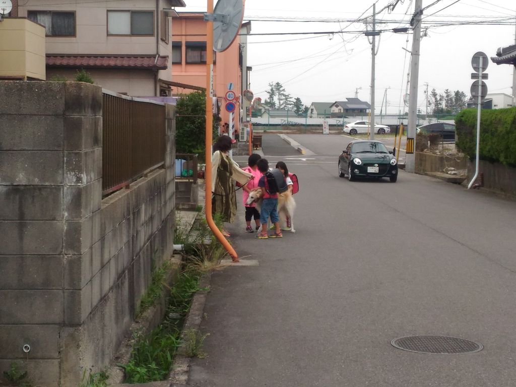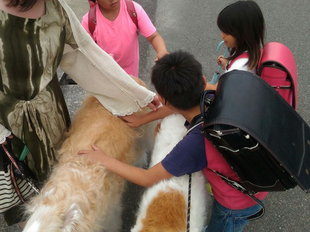 散歩の帰りに、陸ぼんが下校途中の小学生に捕まった