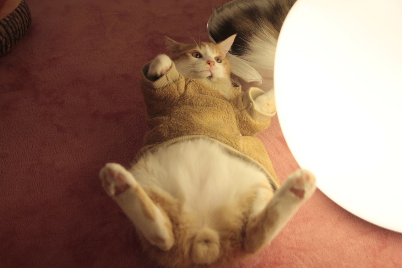 お洋服着せてもらった大和。お腹冷えるものね (:3[_____]