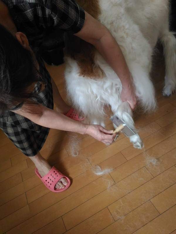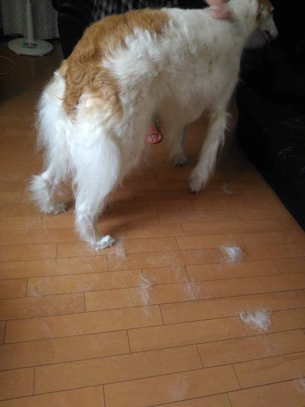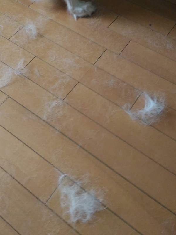 ユリさんの周り一面にはおびただしい抜け毛が散乱している