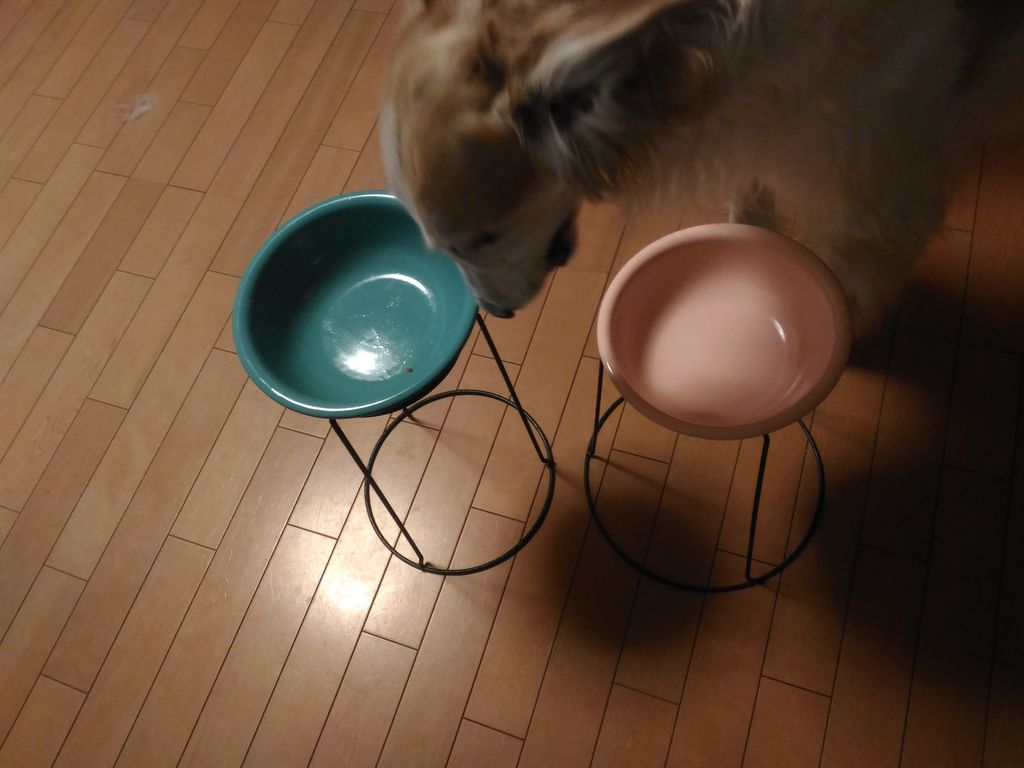 カイ君の水飲みは、周りに床に水滴を落とさず静かに飲んでいました