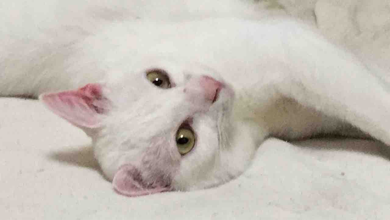 保護して2ヶ月くらいの時の麿白。こう見ると、体型が子猫ですね。