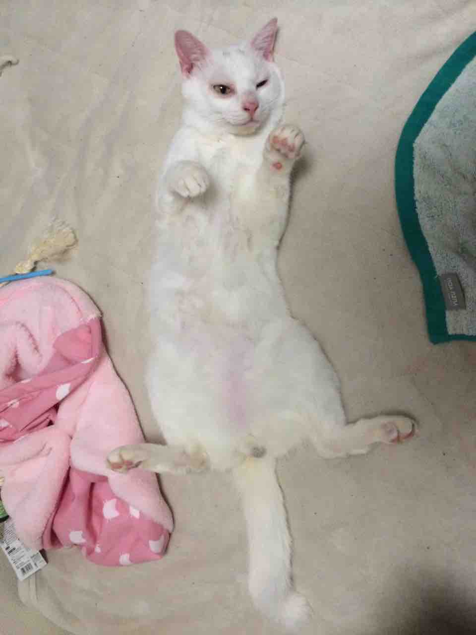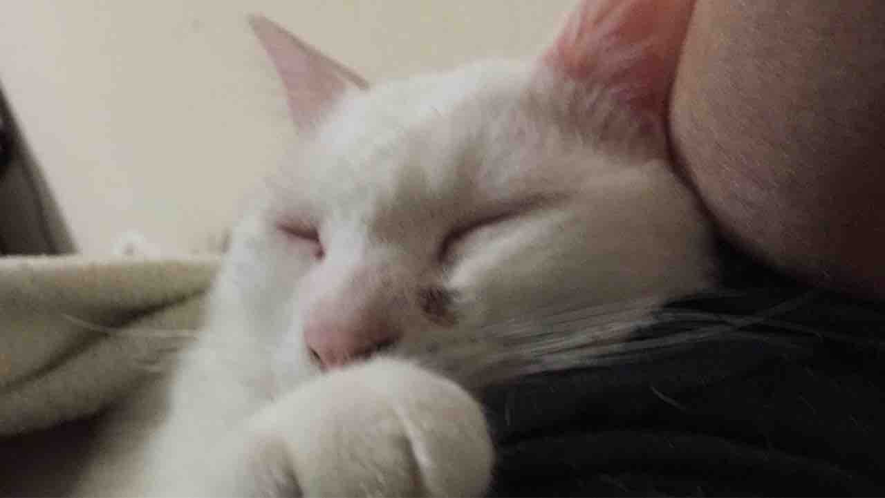 ただ、保護初日から添い寝するくらい甘ったれだったし、ペタッとくっついて眠るのがおそらく一番幸せそうな顔をしてた麿白。