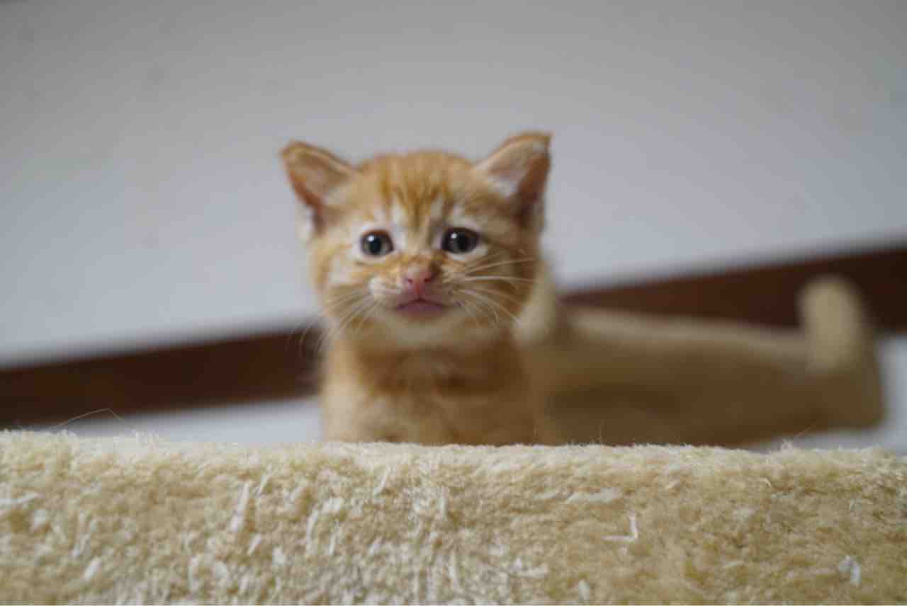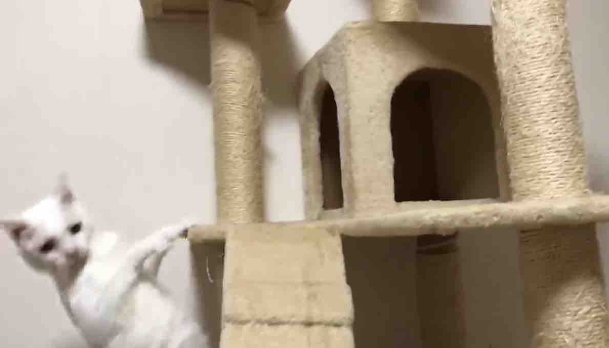 三段のタワーは子猫にとっては登るのは簡単、降りるのは怖いという、いい教育施設でした。
