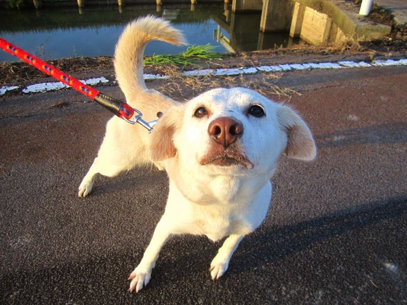 お散歩してたら、近所の雑種の女の子に出会いました。