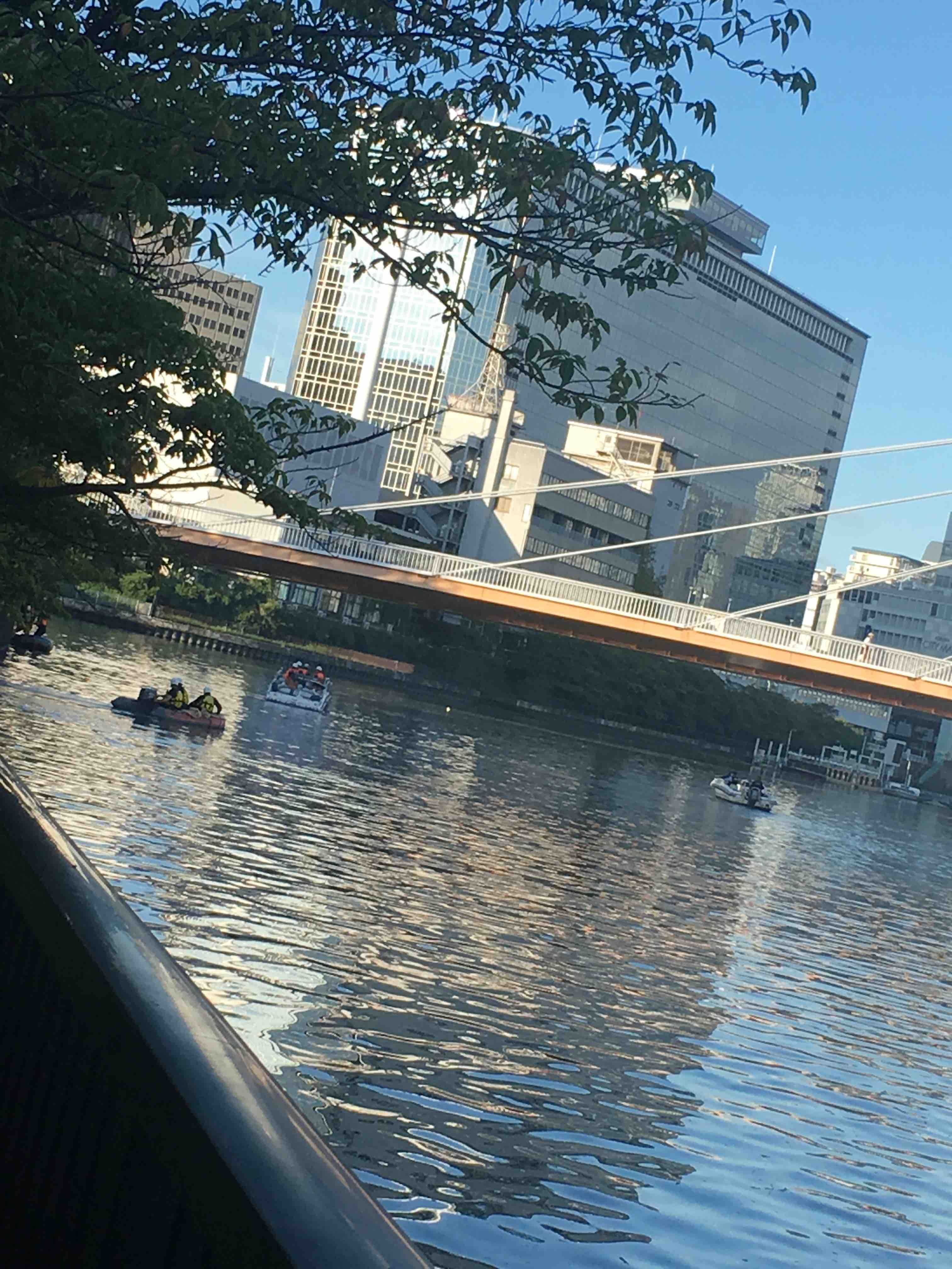出ると、トランプちゃんが来た時くらい、警官やレスキューの人がたくさんいます。