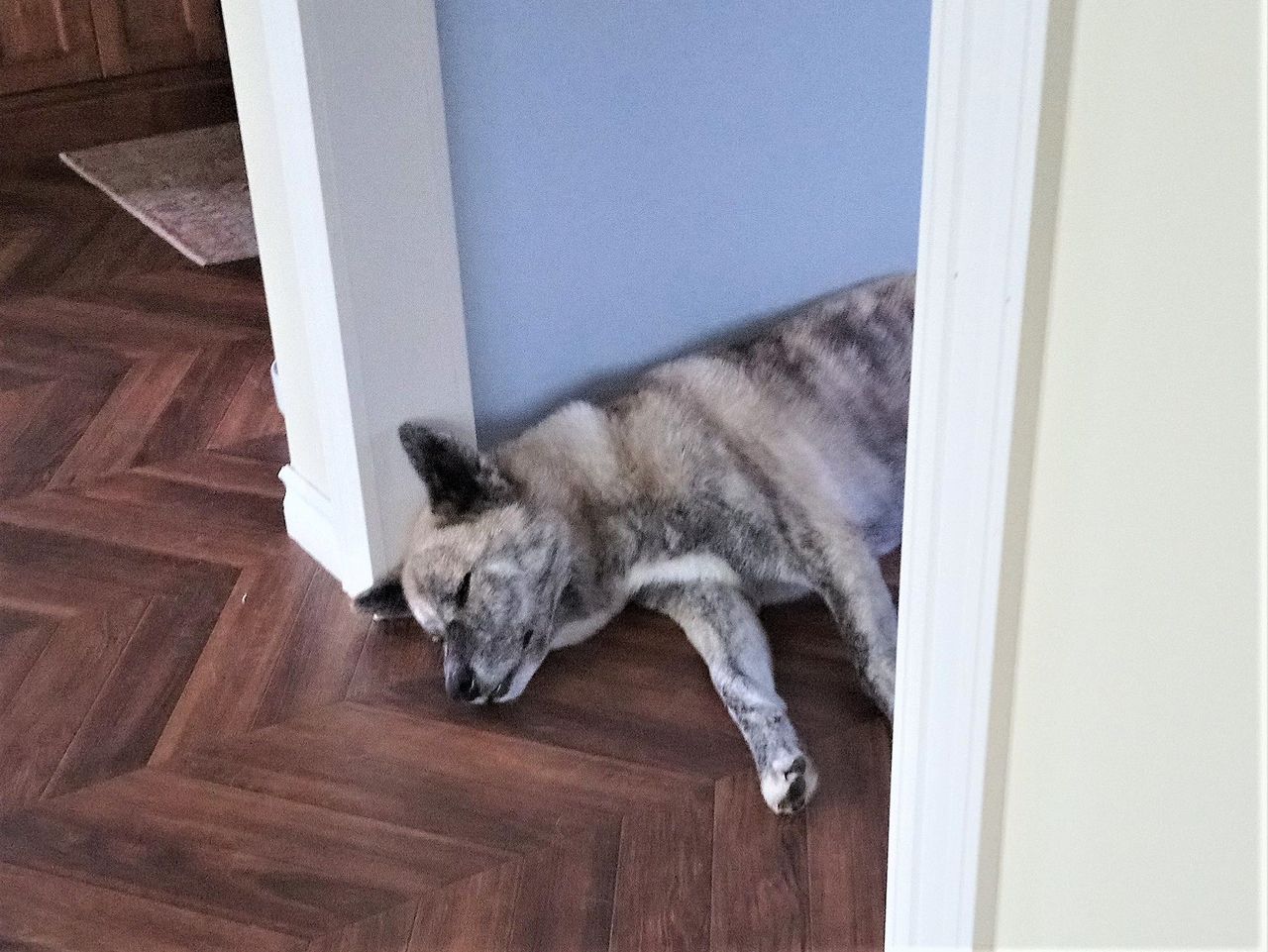 こんな日ははっちゃん(秋田MIX♂7歳)はずっと部屋で寝ている。