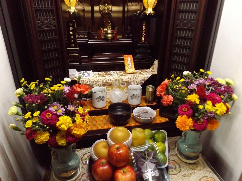 妻は仕事なので、お墓用のお花やお供え品は準備してくれてましたよ。