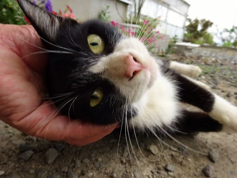 ずーっと黒ちゃんが足元を付きまとうので、なかなか歩くことができません。
