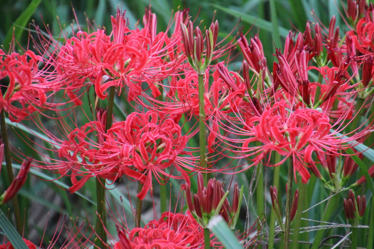 彼岸花が田んぼの畔にたくさん咲いています。