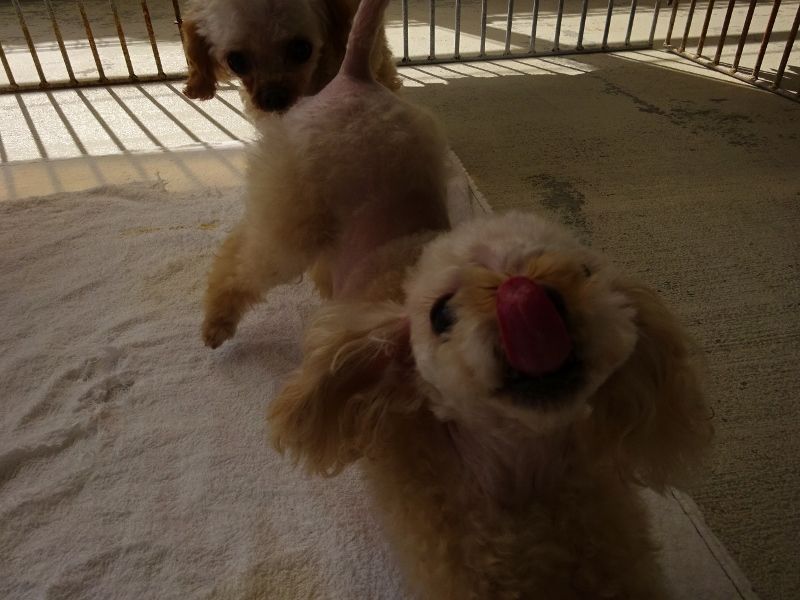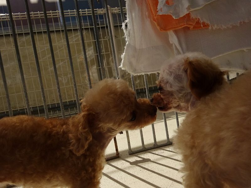 シャンプー済んでドッグランでのオシッコタイムは、いつもは皆から匂いを嗅がれてましたが、今日は伽羅君とキスしてましたよ。