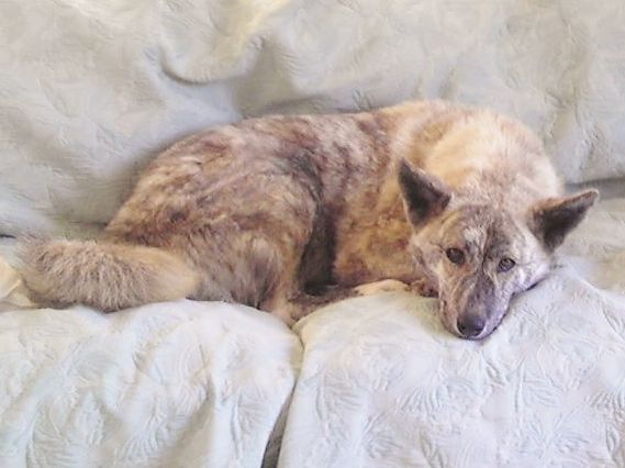 はっちゃん(秋田MIX♂7歳)は、トイレが済むと飛び跳ねるように戻ってきて、ベッドの上に飛び乗って尻尾をぶんぶん振っていた。