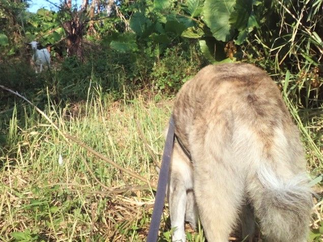 草むらに踏み込んで食べていると、遠くからヤギさんがじーっと見つめている。