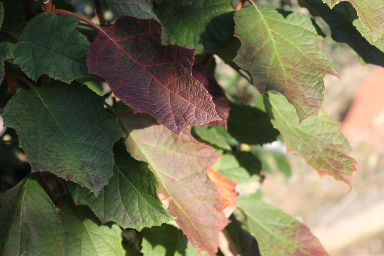 柏葉アジサイの葉が紅葉してきました。