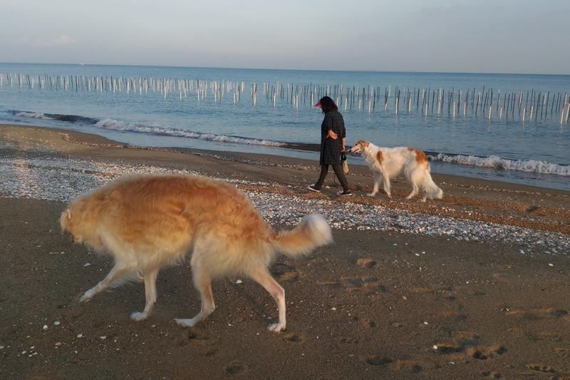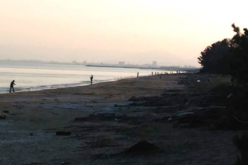 夕方ユリ母が帰ってきたので海岸へ、堤防の坂道にたくさんの車が停まっていたので、何だろうと思って海岸に下りたら