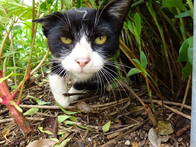 黒ちゃんは、ひんやり畑の中で寛いでいます。