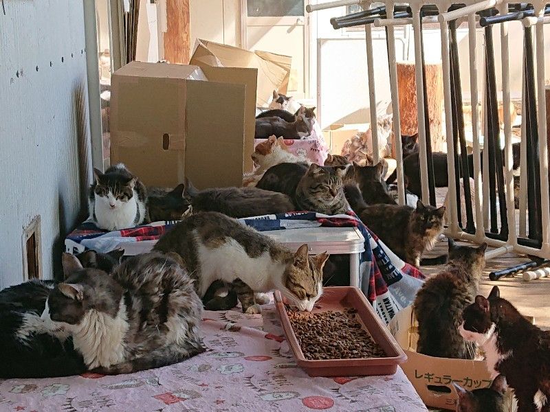多くの猫が暮らす部屋では