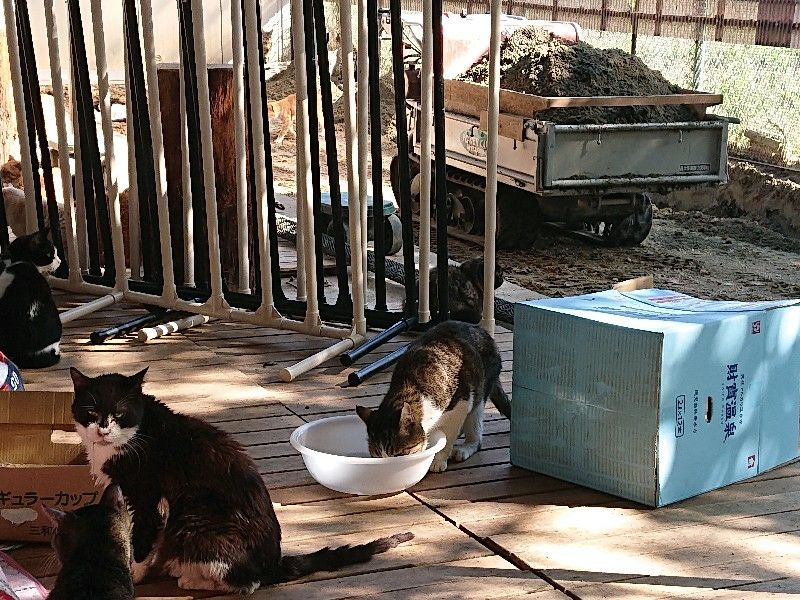 猫たちも慣れたもんで