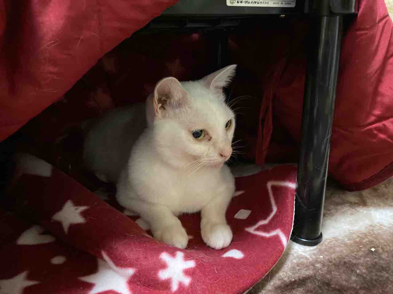 麿白先生の最近のお気に入りはこの猫こたつ。