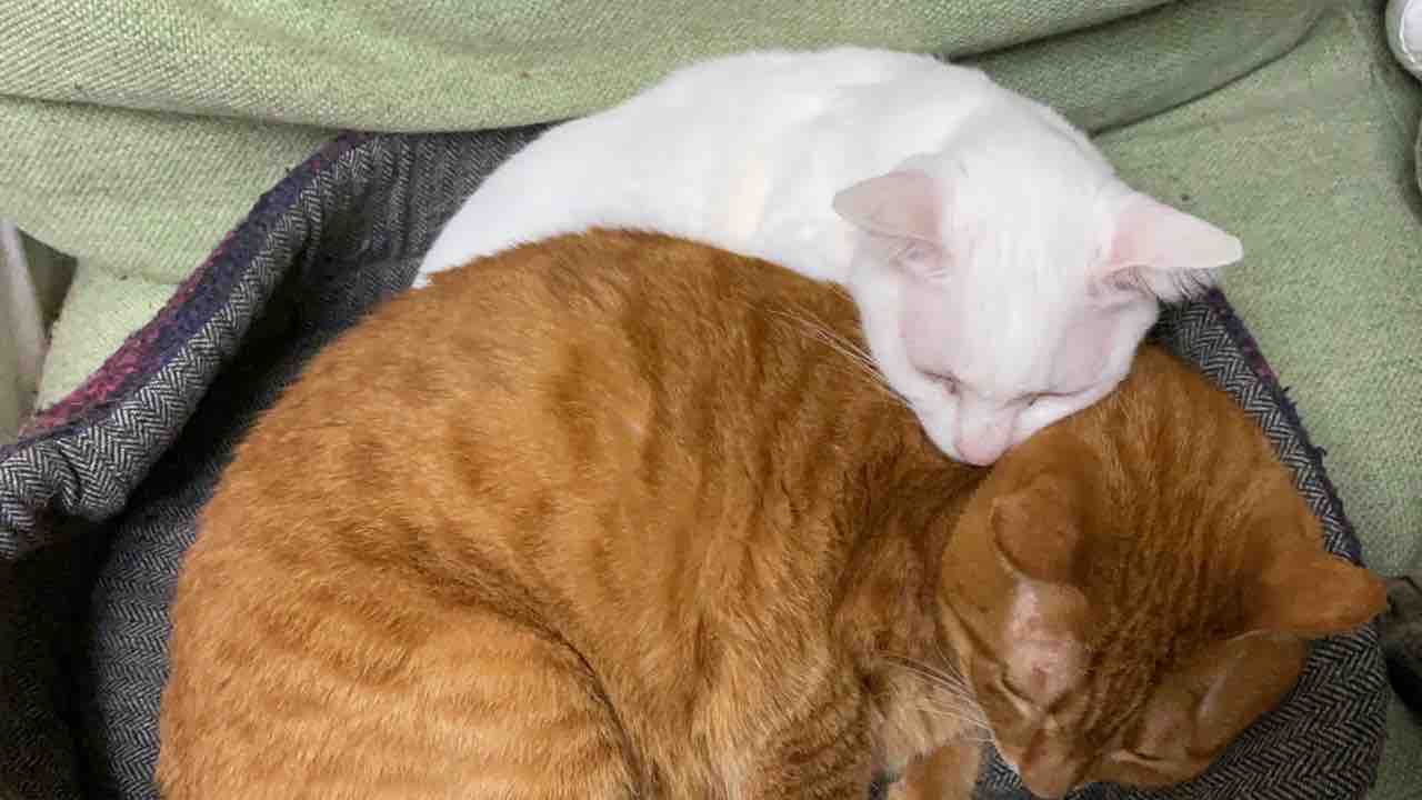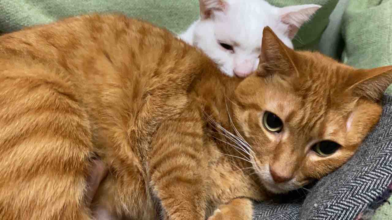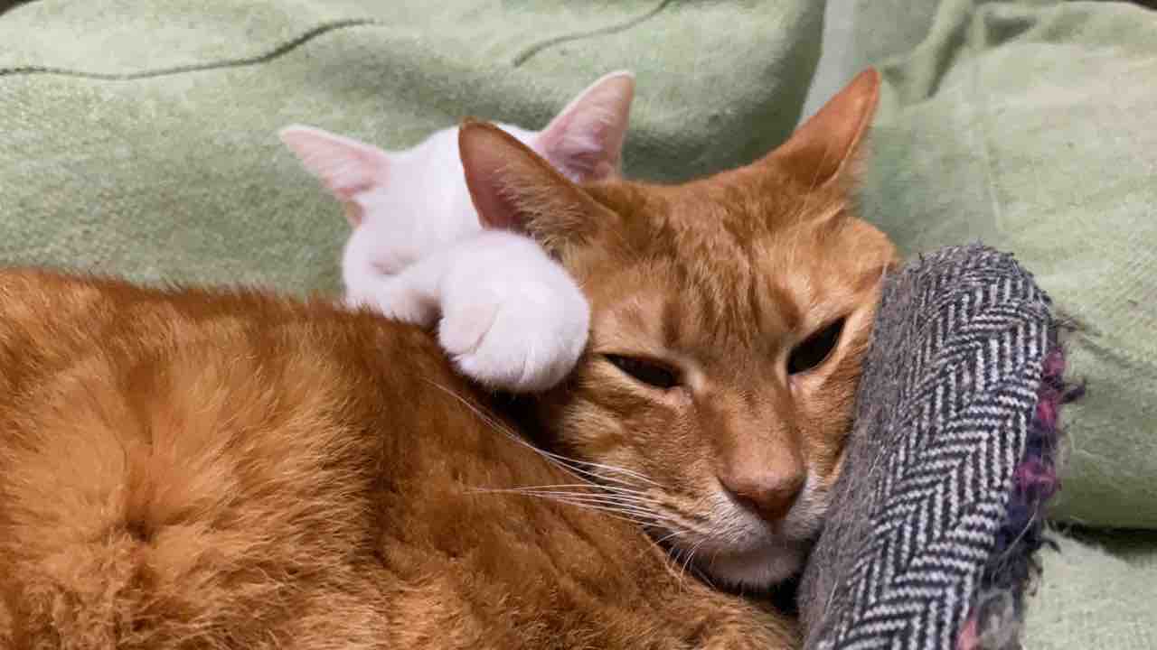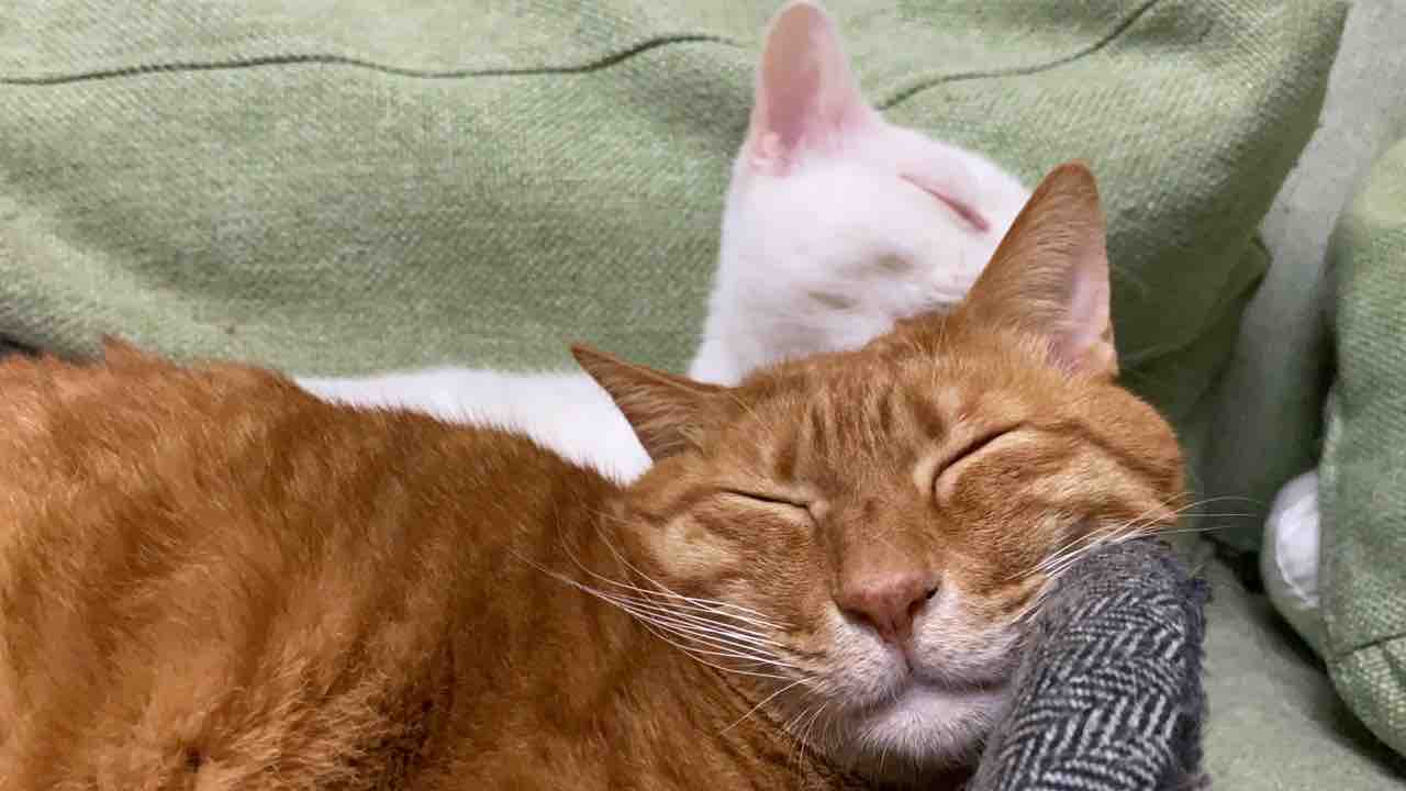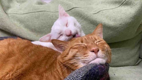 最近、参瑚がサンゴロールに入るので頻度が少ない麿白先生との猫団子。