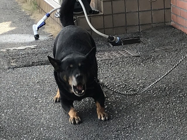 上↑のとも君に向かって吠えるクマ君。