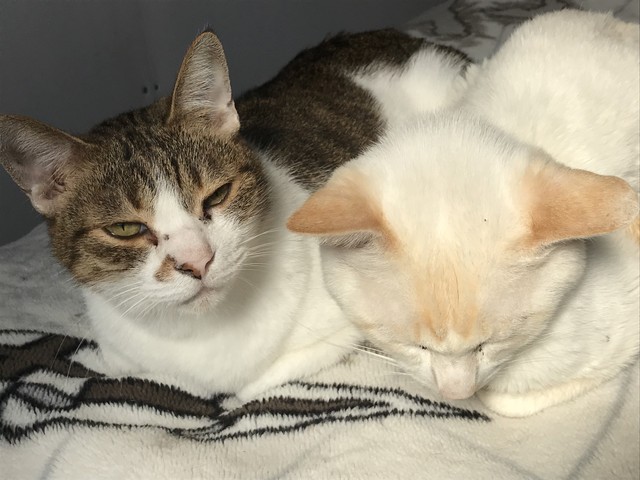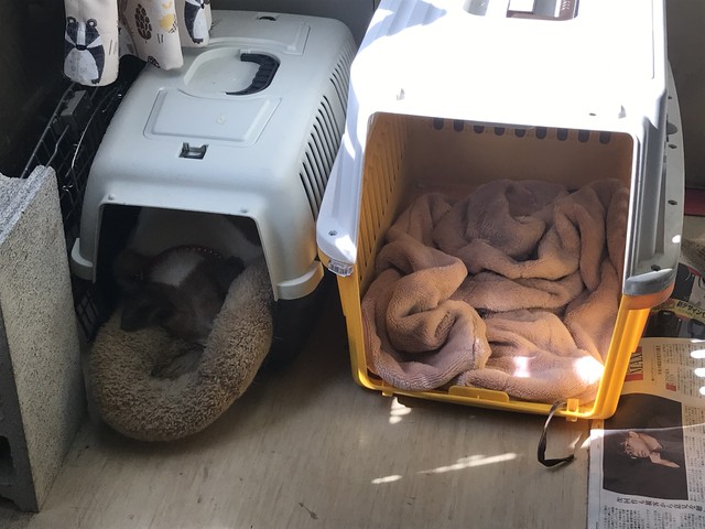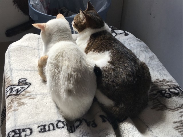 2匹仲良く同じ格好で日向ぼっこ。