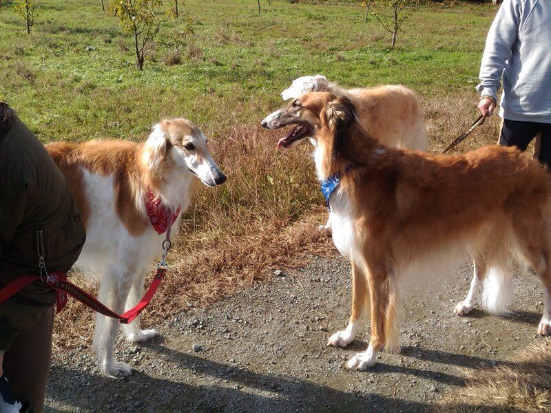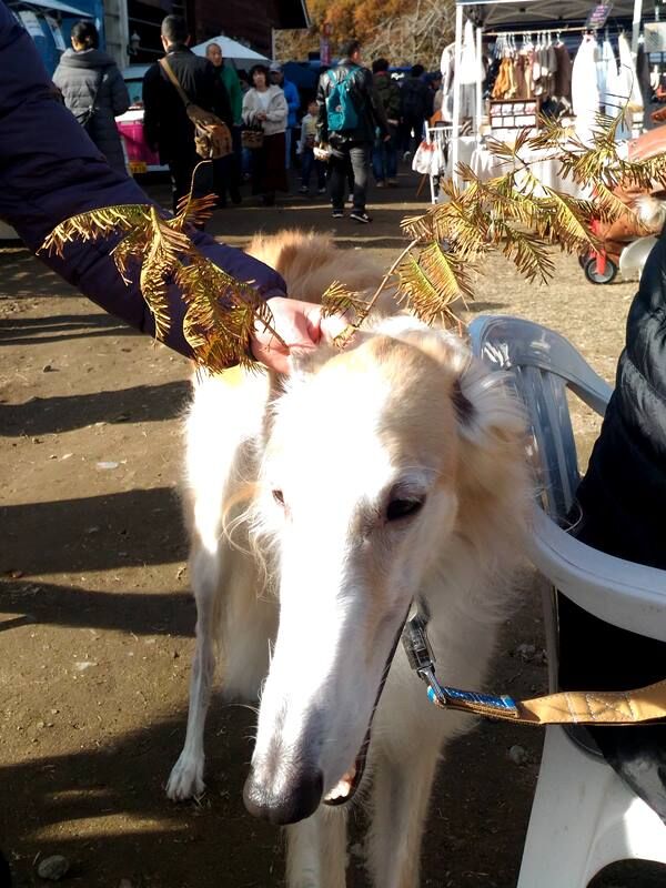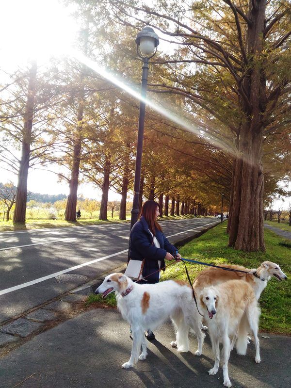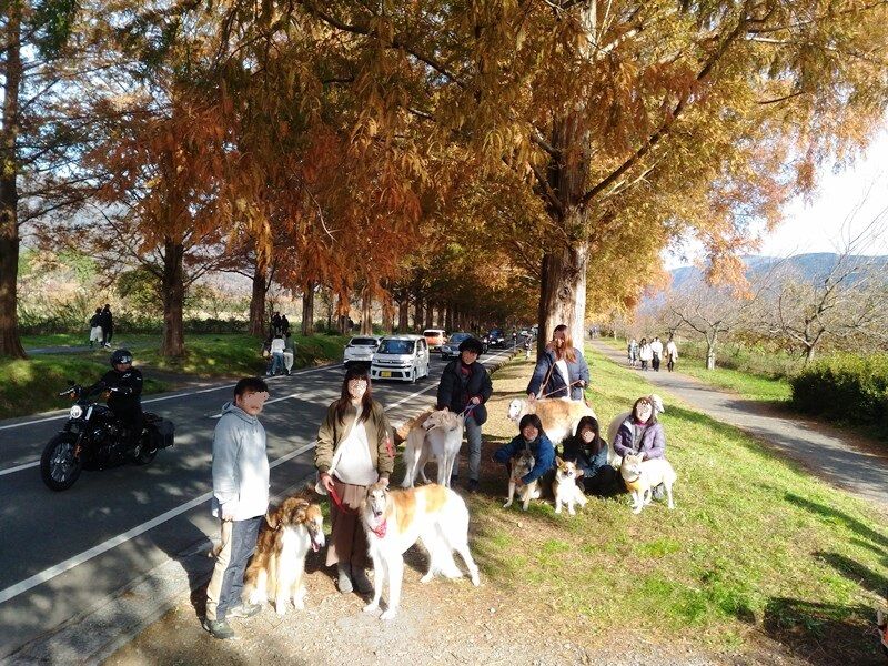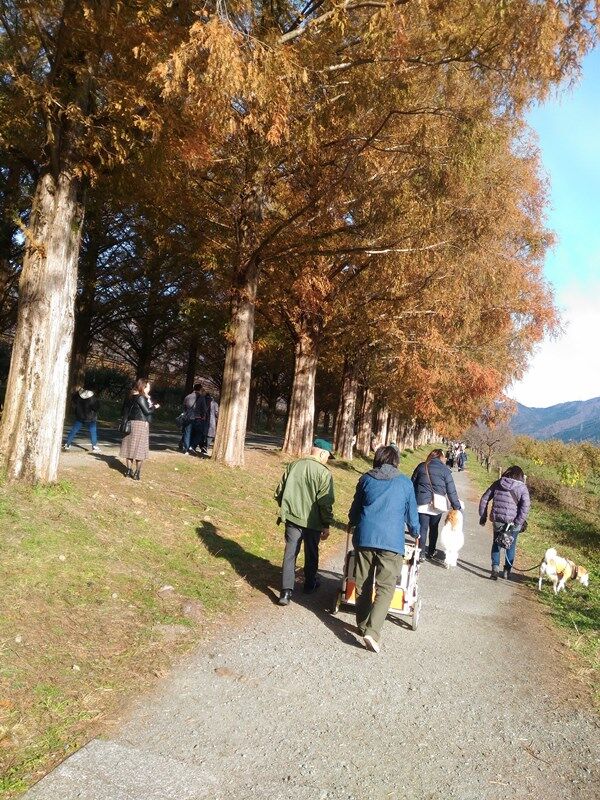 メタセコイア並木を数百メートル往復して戻って来ると、ダックス連れの方に声をかけられた
