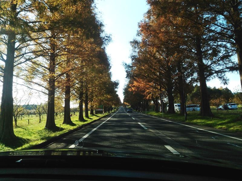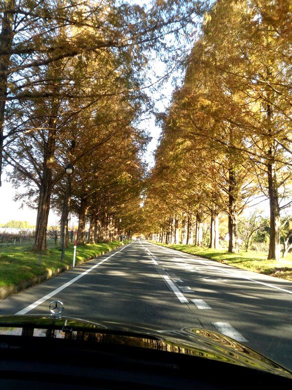 2.4km続く並木を車をゆっくり走らせて通り抜け引き返して戻ってくる