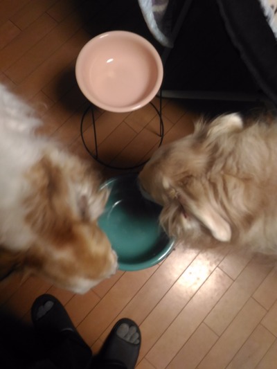 おやつを上げたら急いで各自の好きな場所でカリカリ食べました