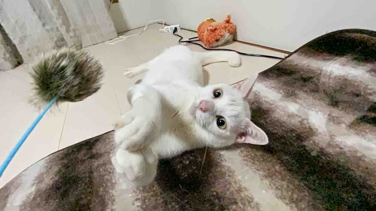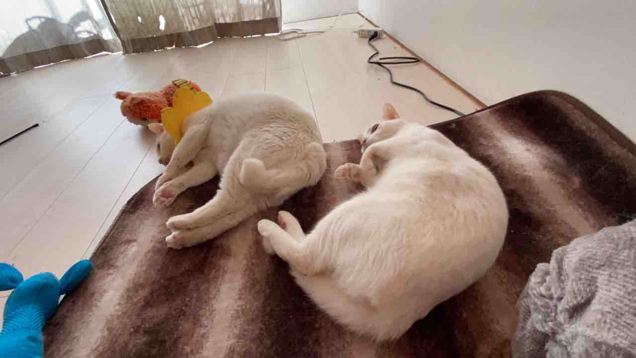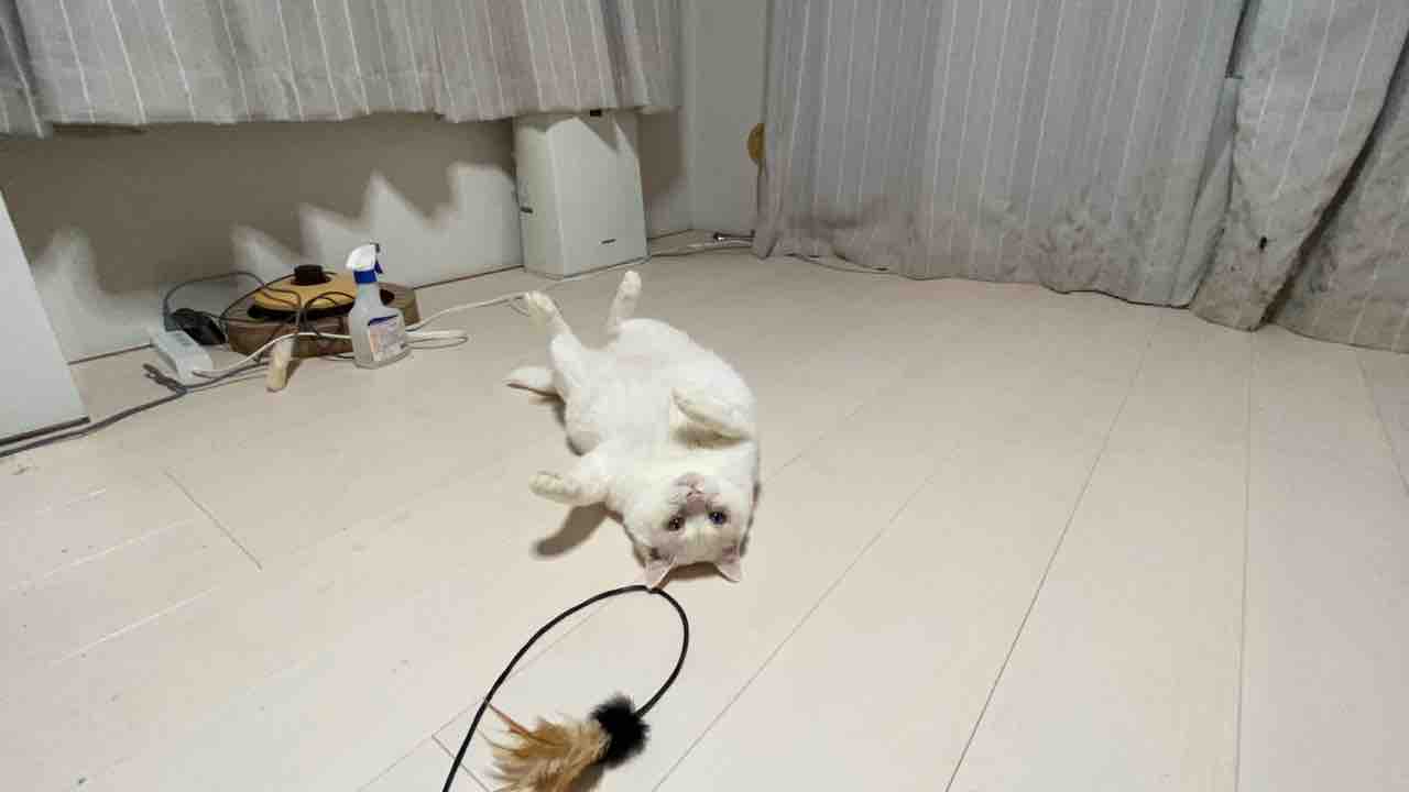 新しい猫部屋Ⅱでのびのびと遊ぶ麿白先生と曉璘。