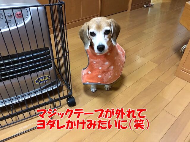ガオとお揃いで元々はビーグルブログ界のレジェンドビーるくお爺さんのお下がりなんだってことはご存知とは思いますけど特徴がある洋服だからどうなってるの?とか聞かれます。