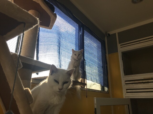 見つめてくる白猫たち、、。