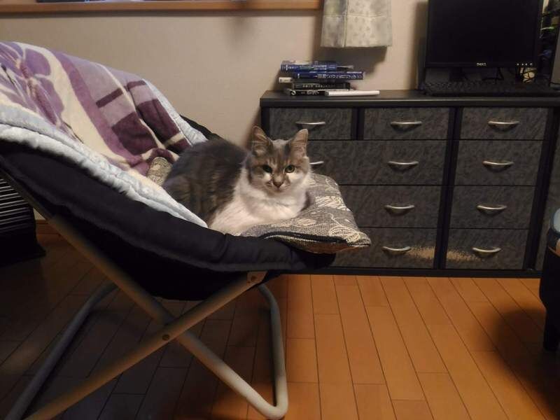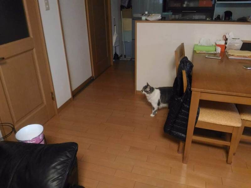 ドアを開けたらユリ母の足元にすり寄る準備をしている
