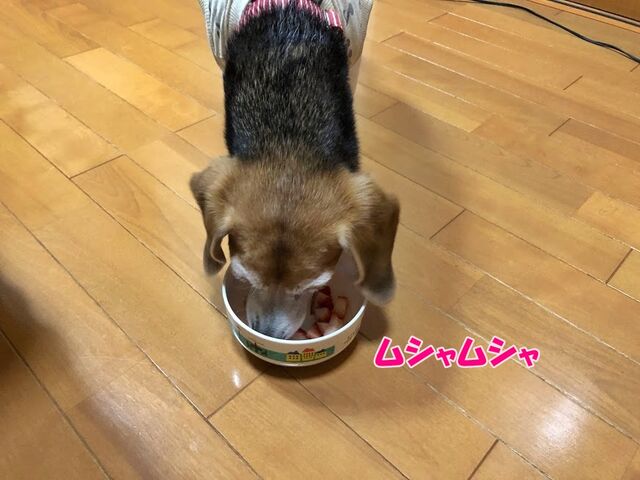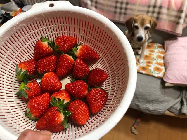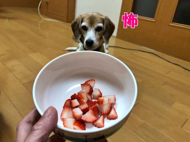 ビーグルなら転がったイチゴに飛びつくと思うんだけどあたしの『あーーーーーっ』って大きな声でびっくりしてリビングに逃げちゃった