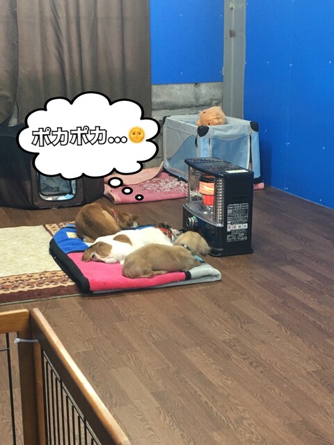 ビビアン、てつ、はくコンビが仲良く暖まってます