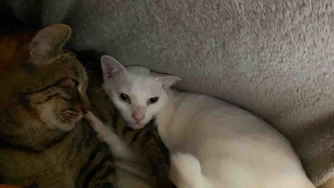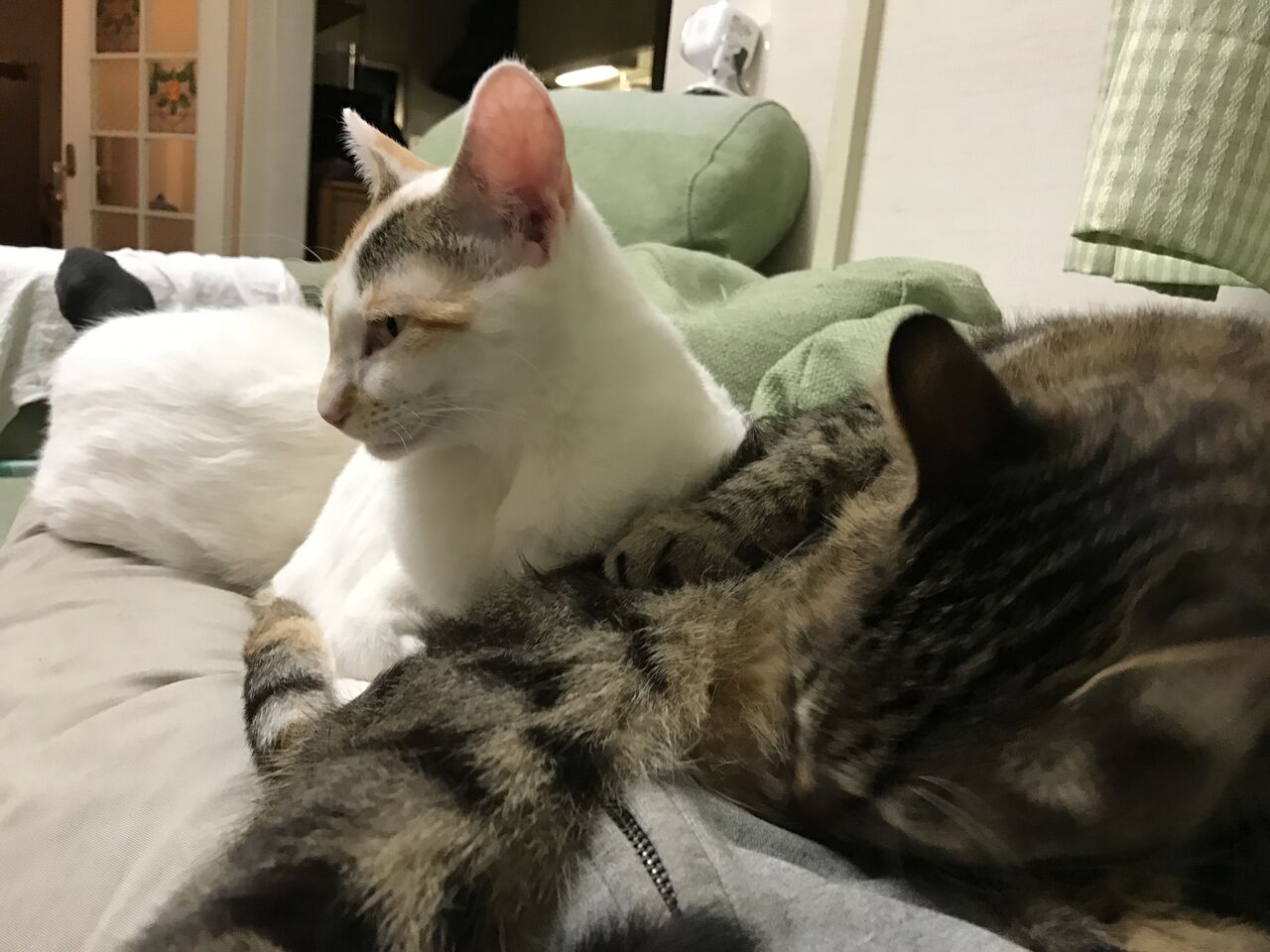 この時期なのでまだ麿白先生は添い寝。そこに、時雉も加わりました。