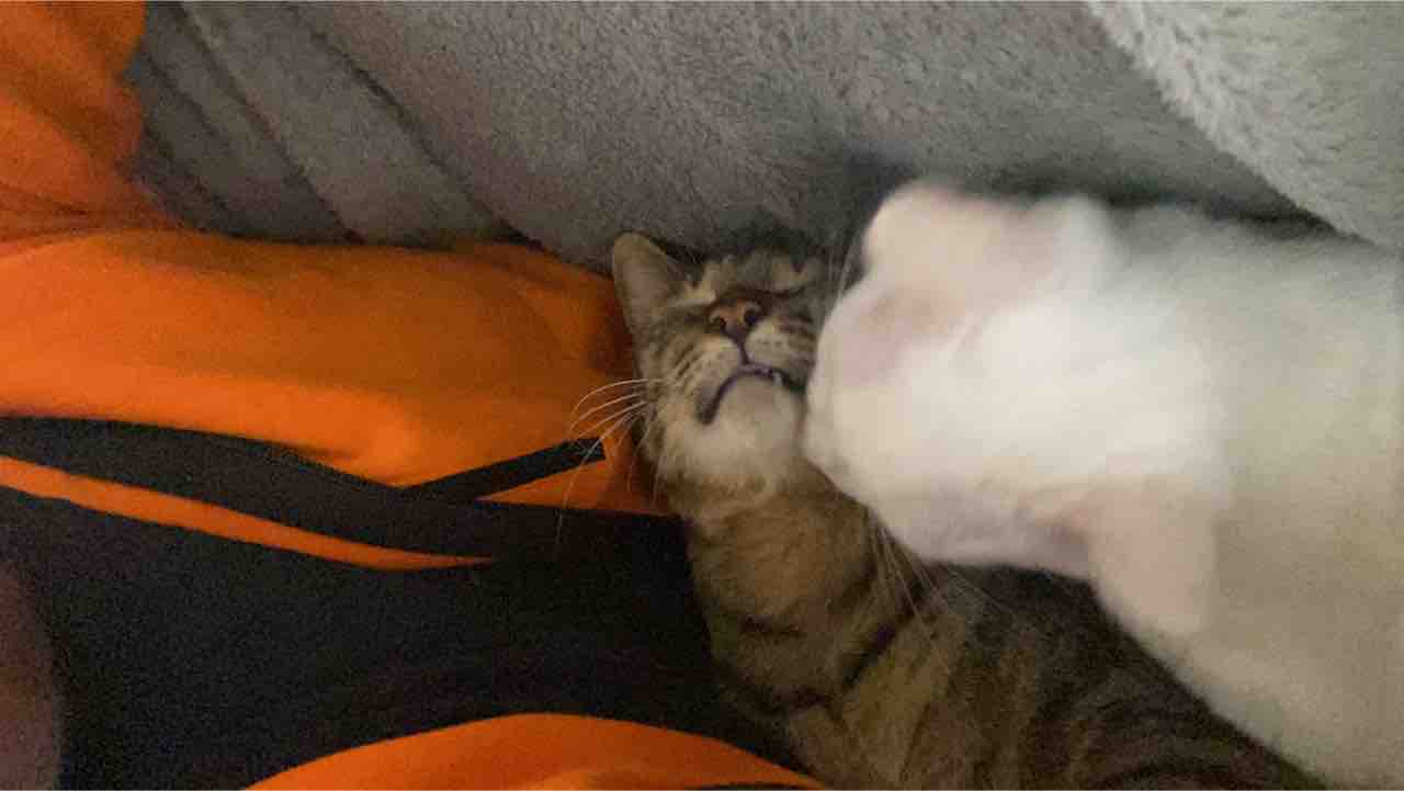 仰向けになったら胸だの葦田に乗ってくるやつですね。