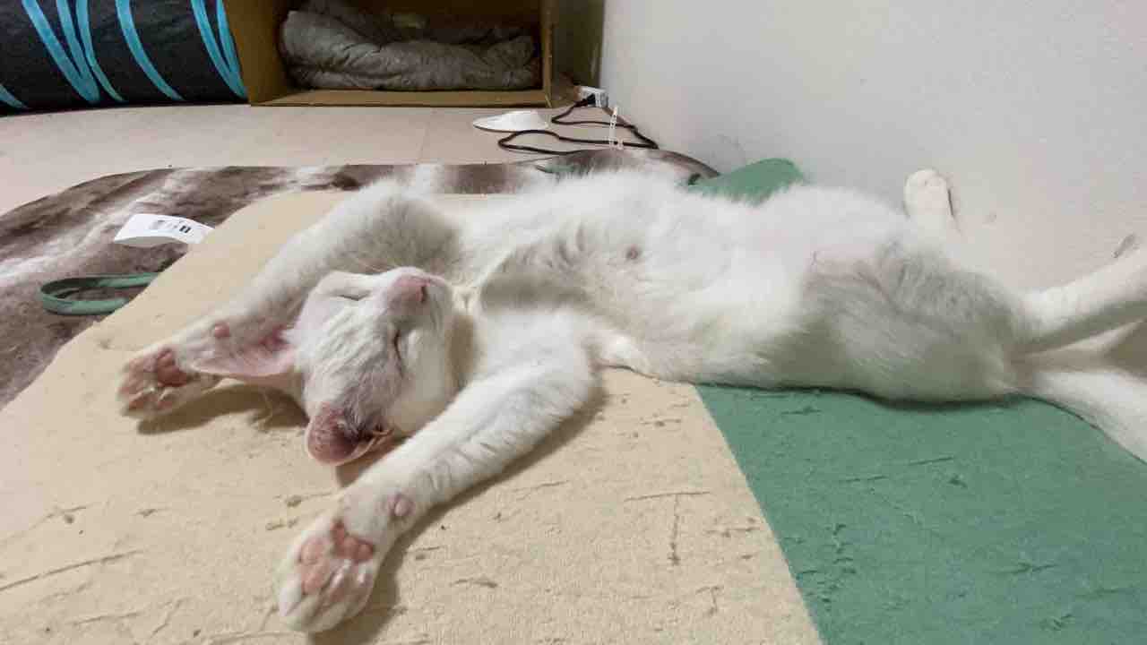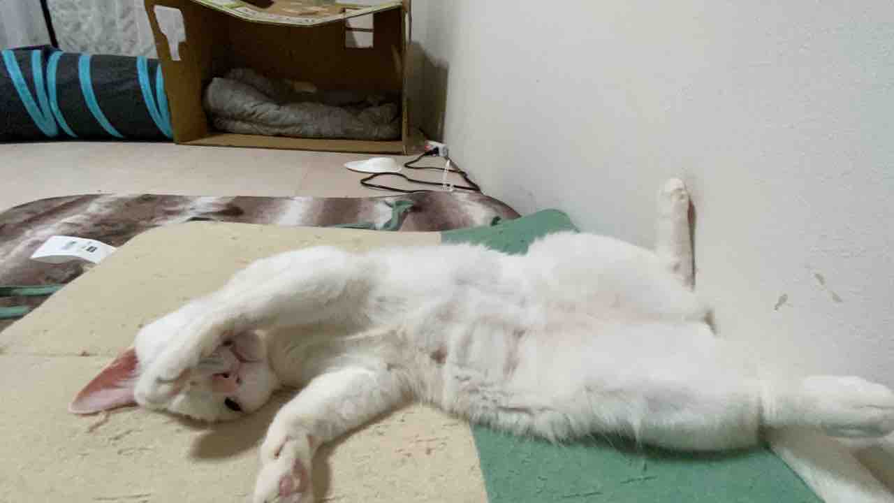 ここのところは顔が埋もれる寝相ばかりでしたが、久しぶりに放熱の寝相を見せてくれました。