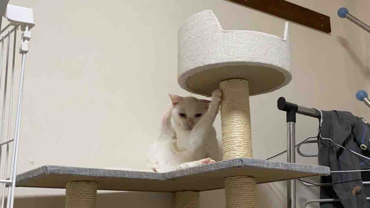 取り繕うように爪研ぎ。しかしその時点でもなんだかおかしい。