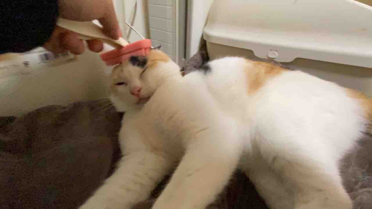 一応換毛期なんですが、毛皮が薄いので一般的なブラシでは刺激が強すぎる模様。