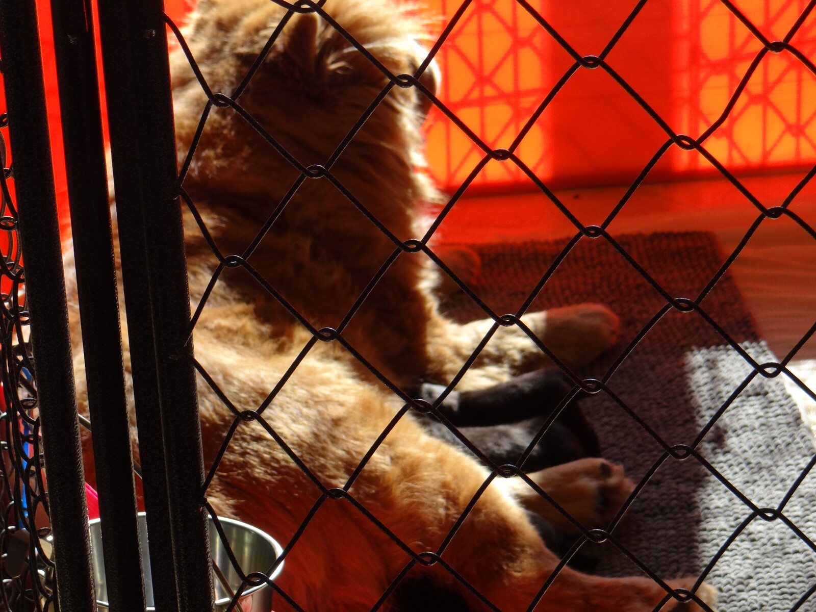 タープかけたがフレイヤはフェンスギリギリにいて