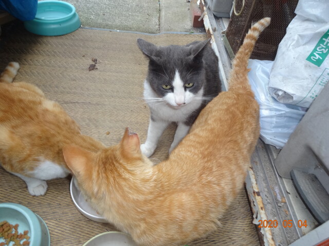 外猫は、5匹います。4匹は去勢手術して、耳に桜カットをしていますが