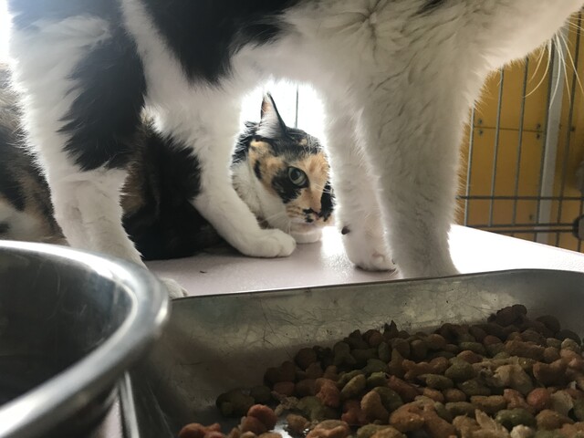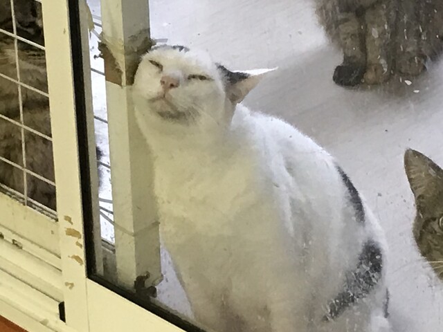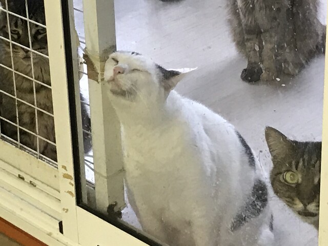 小さい声で「にゃ」。