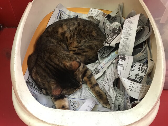 トイレで爆睡中、プリン君!!